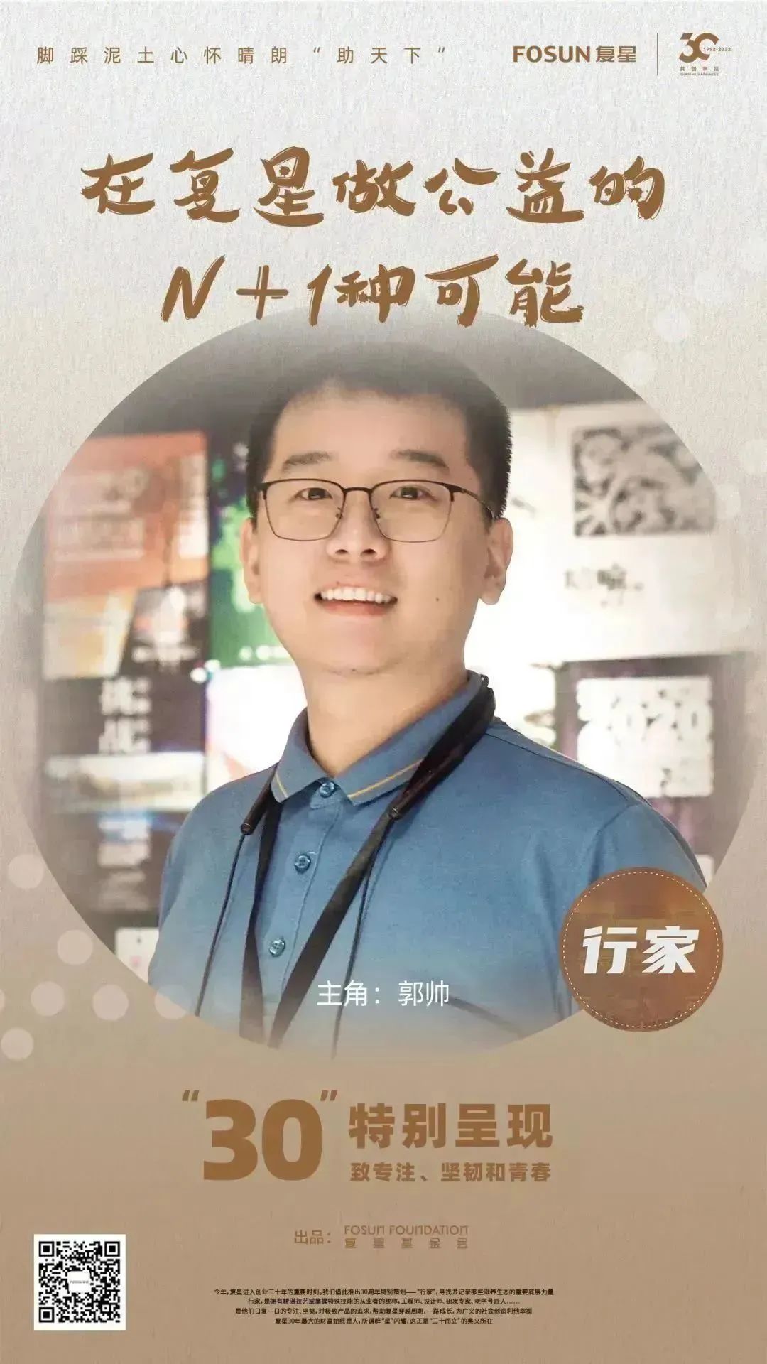 8年前,郭帅加入复星,成为成员企业江苏万邦的一名药品销售负责人;8年后,郭帅是上海复星公益基金会(下称“复星基金会”)的助理秘书长兼高级项目总监,成为了一名职业公益人。
