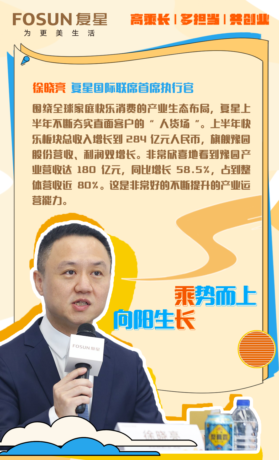 徐晓亮说,目前复星众多业务都进入收获期,未来复星在长期布局的基础上,会持续深耕产业运营,实现高速“乘长”。