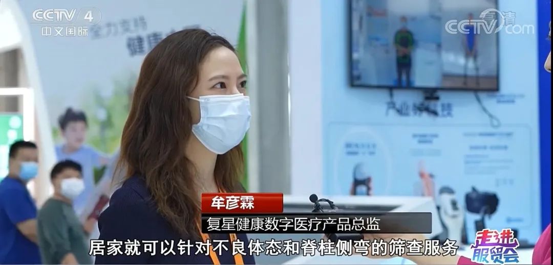 9月6日,央视《中国新闻》关注复星健康展台上的“产业好科技”,介绍了由复星健康和复旦大学附属华山医院共同研发的远程脊柱健康服务。这款产品通过人工智能技术和丰富经验的专家团队指导有效进行数字康复训练。