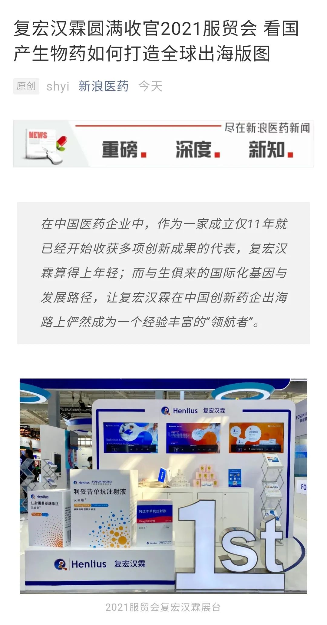 复宏汉霖圆满收官2021服贸会 看国产生物药如何打造全球出海版图