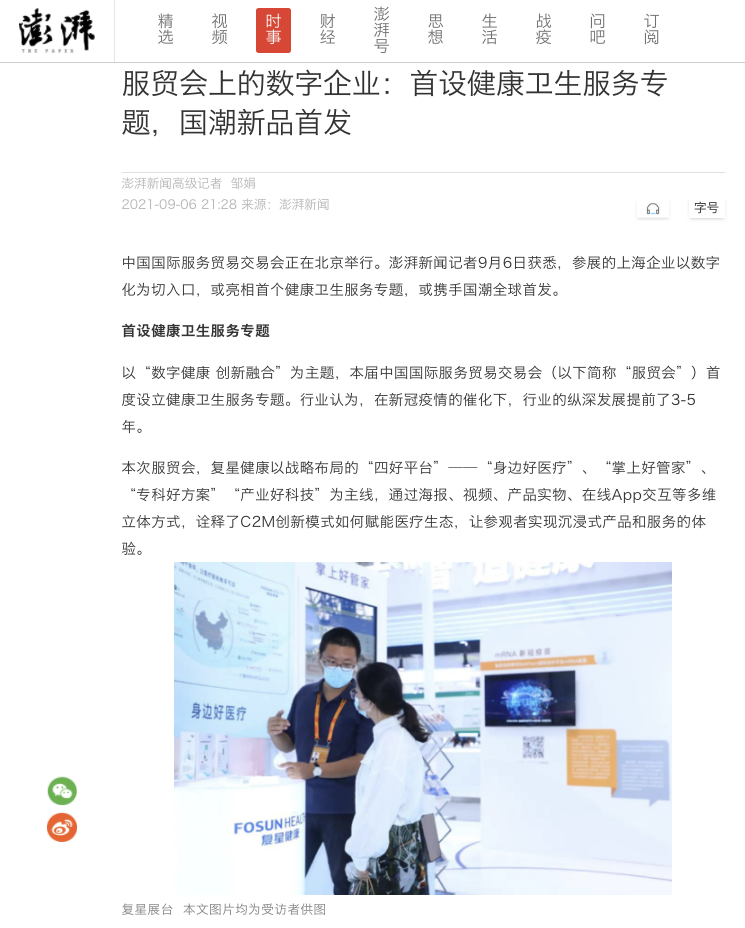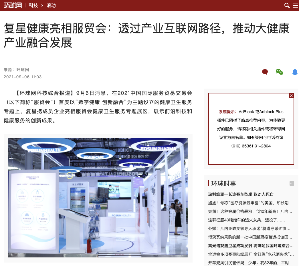复星健康首次亮相2021服贸会 媒体聚焦复星“创新驱动”