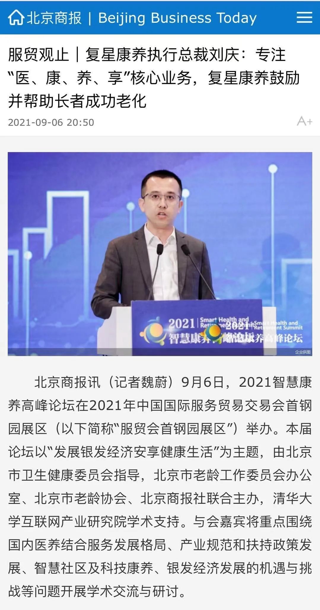 服贸观止 | 复星康养执行总裁刘庆:专注“医、康、养、享”核心业务,复星康养鼓励并帮助长者成功老化