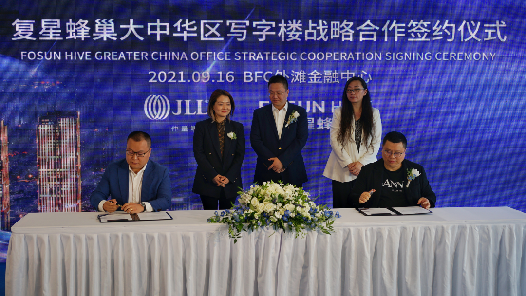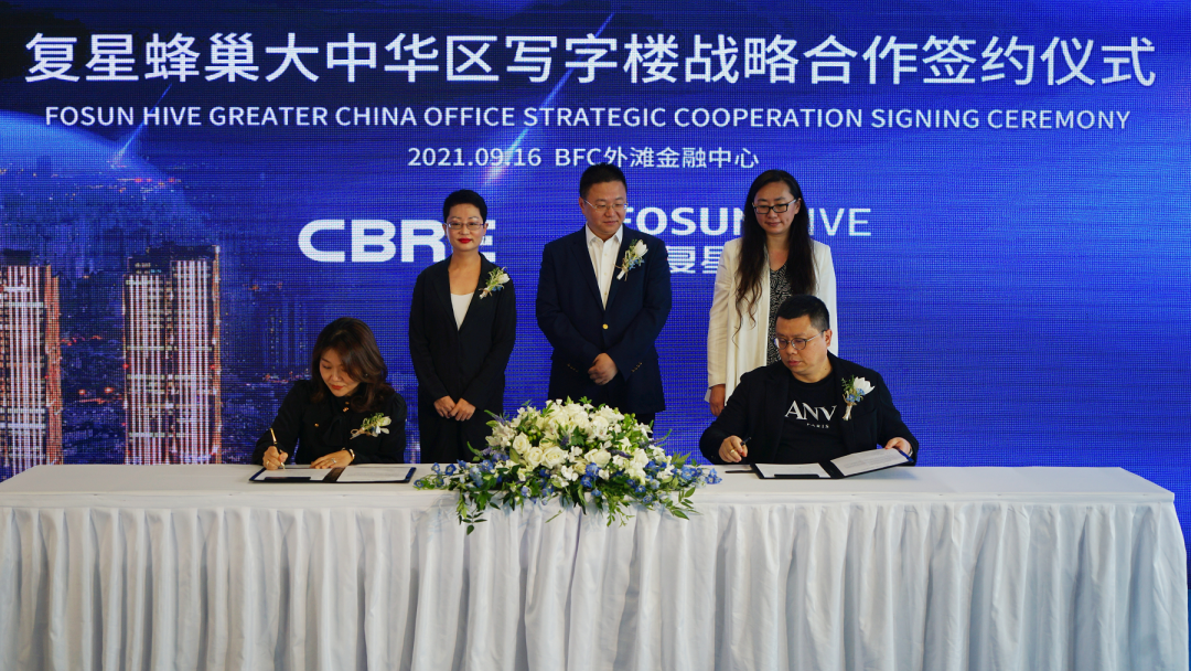 2021年9月16日,复星蜂巢大中华区写字楼战略合作签约仪式在BFC外滩金融中心隆重举行。复星蜂巢、世邦魏理仕、仲量联行三方就咨询、代理、商业管理等服务项目展开深入合作,建立长期稳定、互利共赢的战略合作伙伴关系,助力资产盘活、资源共享,树立全球写字楼租赁产业新标杆。