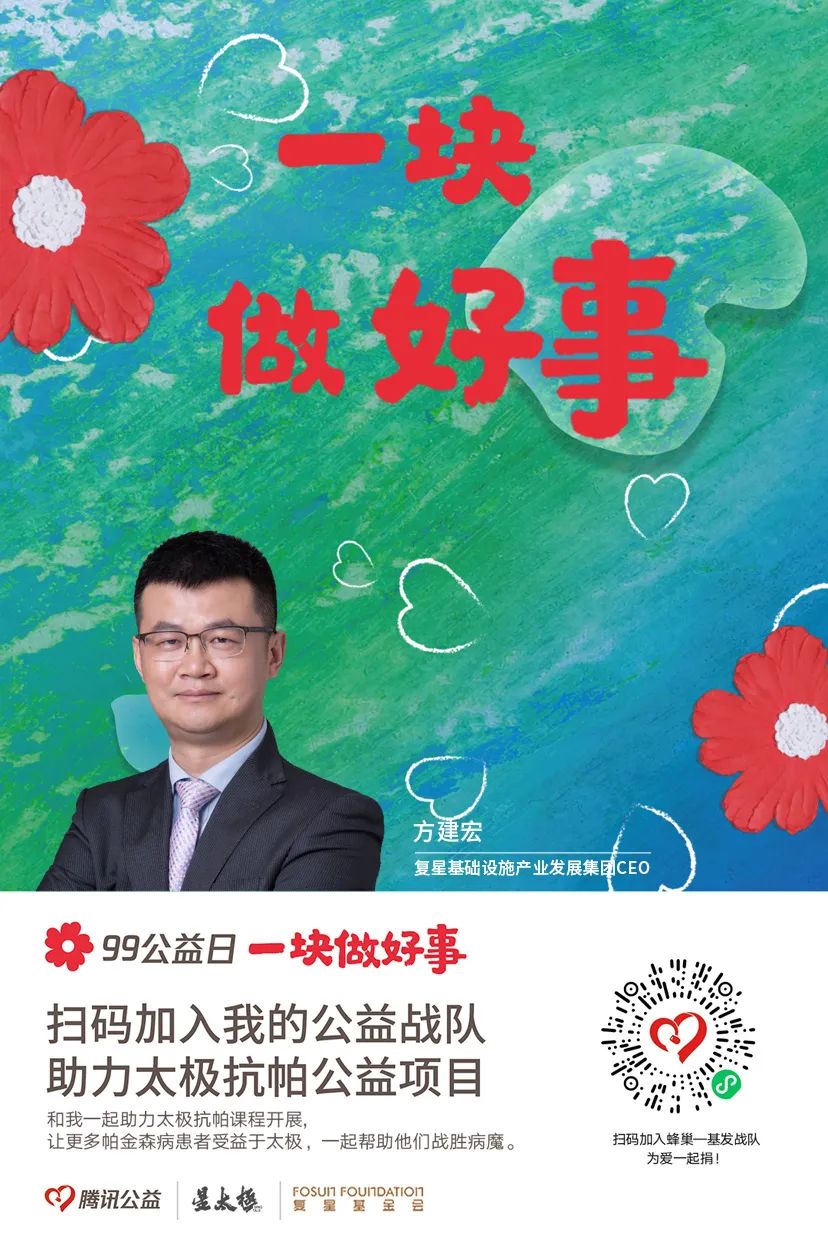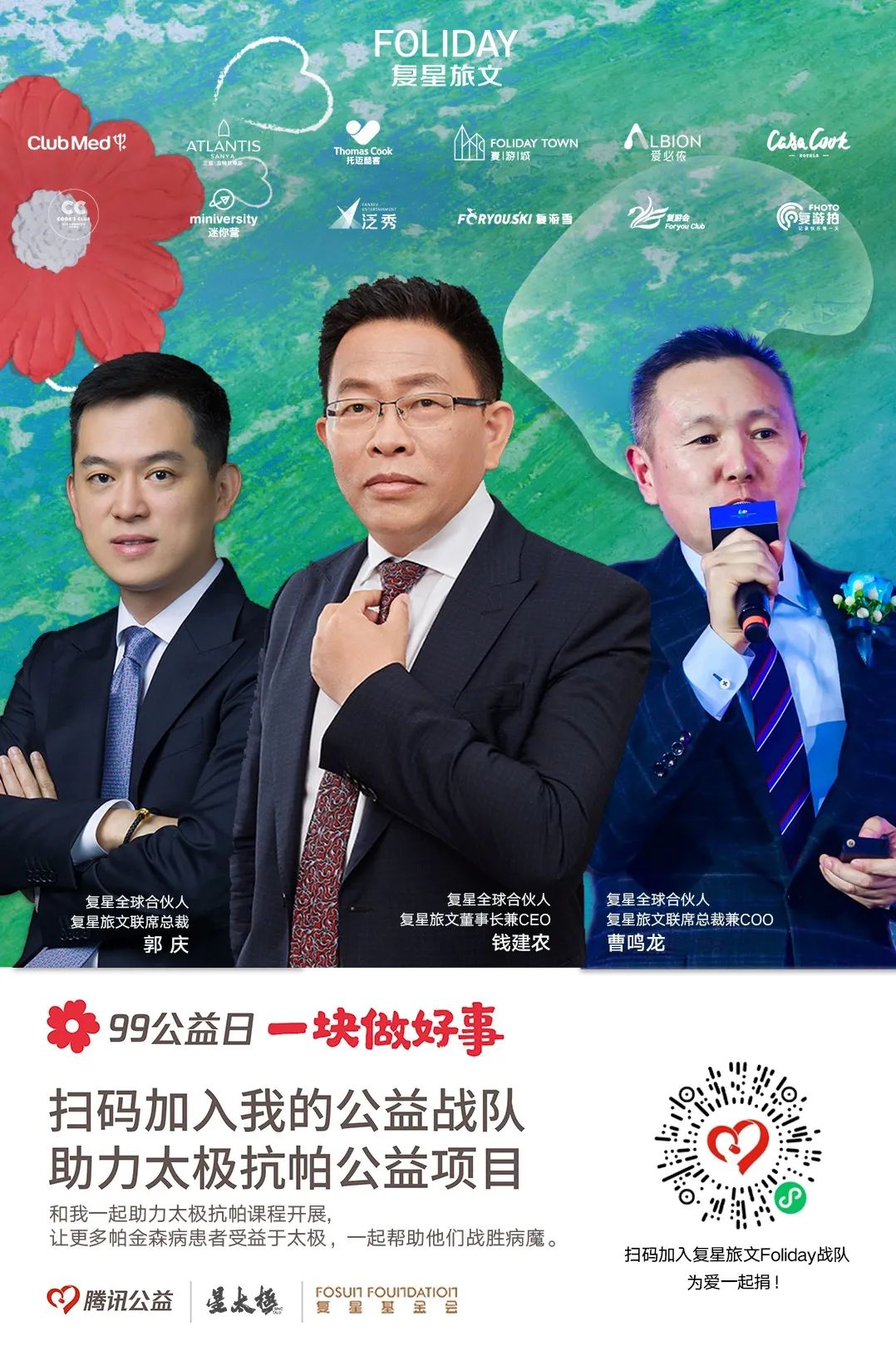 99公益日期间,上海BFC外滩金融中心、上海复地活力城、上海真如星光耀广场、重庆复星国际中心、三亚·亚特兰蒂斯等地参与宣传,让更多人了解“乡村校医室援助计划”和“太极拳辅助治疗帕金森病”筹款项目,为爱一起捐。