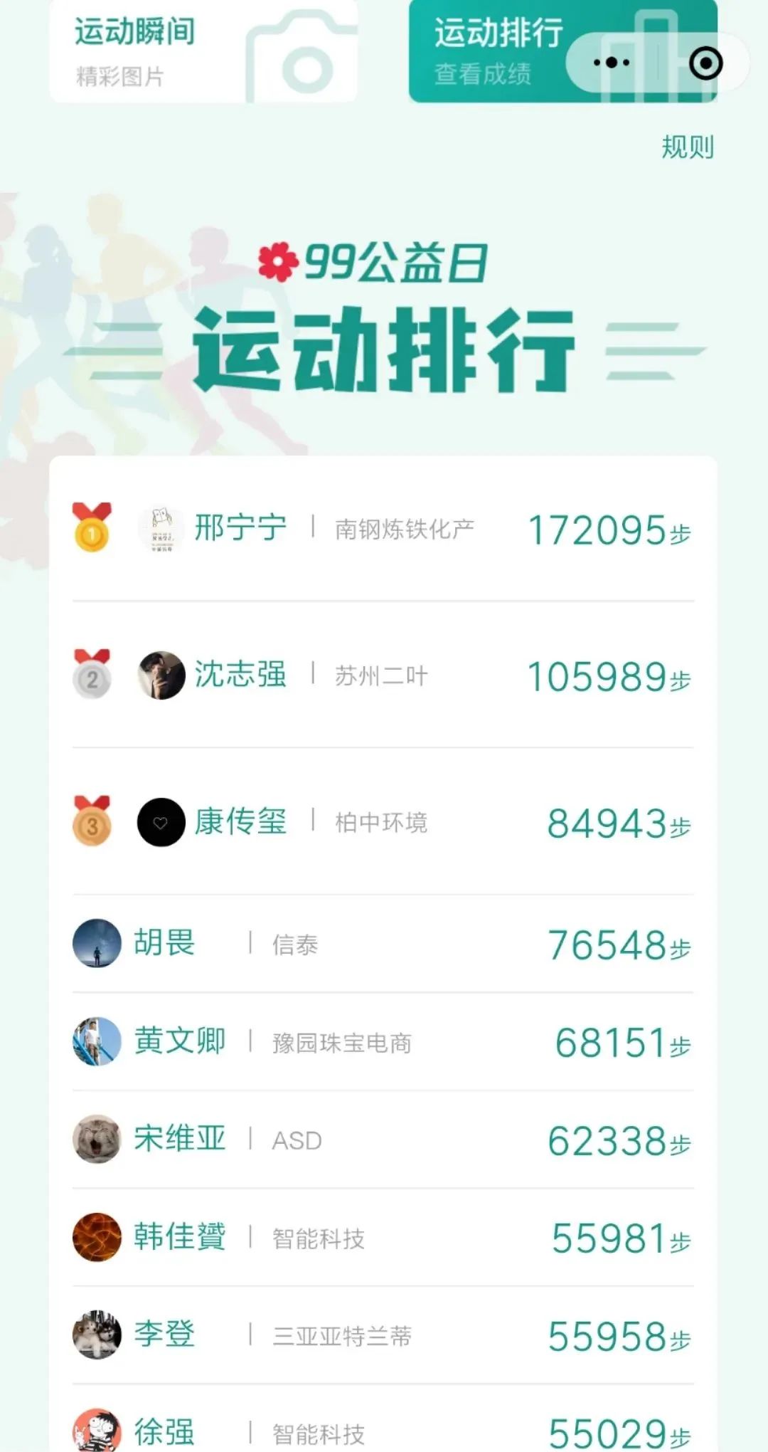 99公益日期间,我们在“复星企业文化”小程序中上线了“星跑团”活动,参与活动的小伙伴们每天都会在小程序中发布精彩瞬间。大家通过影像记录自己的运动风采,为公益项目累积点滴爱心。