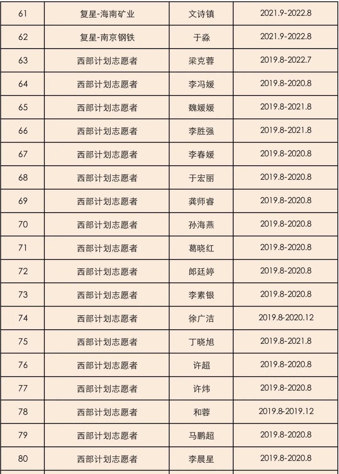 首批39位西部计划大学生志愿者