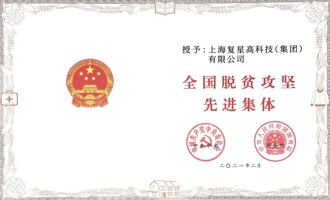 2021年2月,上海复星高科技(集团)有限公司凭借乡村医生健康扶贫项目获得“全国脱贫攻坚先进集体”荣誉称号。