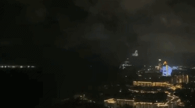 ▲ 今晚,1000架无人机在三亚亚特兰蒂斯升空,为消博会造势,复星品牌口号“为更美生活”绽放海南自贸港夜空
