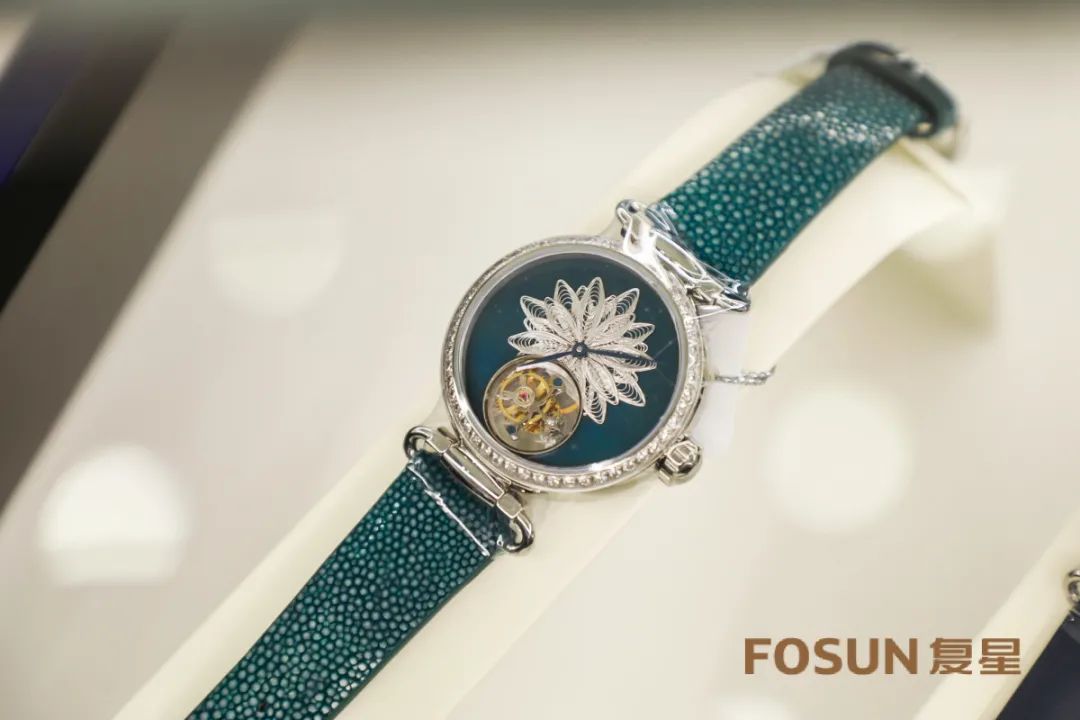 豫园股份旗下汉辰表业带来了各具特色的“中国制造”老字号品牌。诞生于1955年的“上海表”在本届展会上发布新品922新穹镜系列腕表,搭载国产中置摆轮机芯的该款特色产品受到了年轻消费者的追捧;天津海鸥表业作为国货机芯的集大成者,这次集中展示了与得物APP合作的新款时尚系列、城市公务员系列、英超狼队运动联名系列等;孔雀表则展示其潮流陀飞轮系列的最新款式。