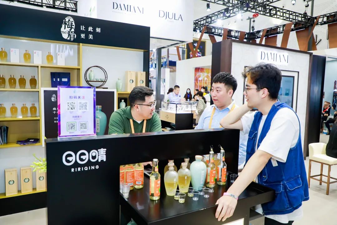 如果说此次最浓香四溢的展台,那非金徽酒、舍得酒、沱牌酒、梅眉青梅酒、及童涵春堂等老字号品牌的展台莫属!此次展出的几大老字号品牌,也加强酒与国潮概念的融合上,在舌尖上诠释中国味道的快乐与创新。