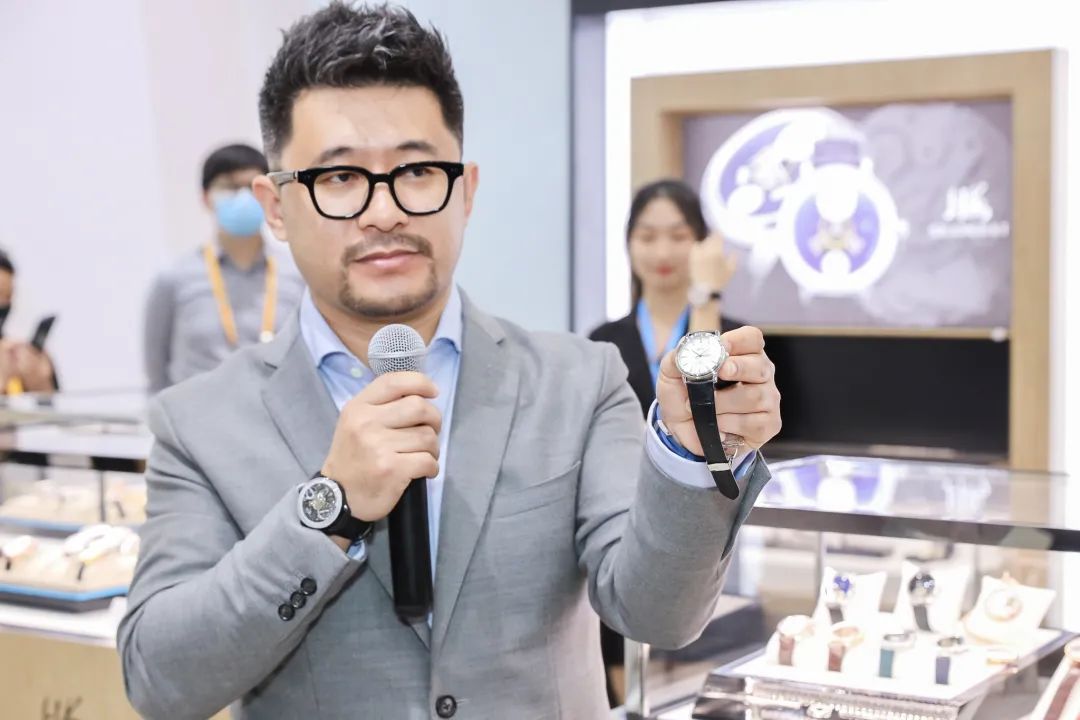 豫园股份旗下汉辰表业带来了各具特色的“中国制造”老字号品牌。诞生于1955年的“上海表”在本届展会上发布新品922新穹镜系列腕表,搭载国产中置摆轮机芯的该款特色产品受到了年轻消费者的追捧;天津海鸥表业作为国货机芯的集大成者,这次集中展示了与得物APP合作的新款时尚系列、城市公务员系列、英超狼队运动联名系列等;孔雀表则展示其潮流陀飞轮系列的最新款式。