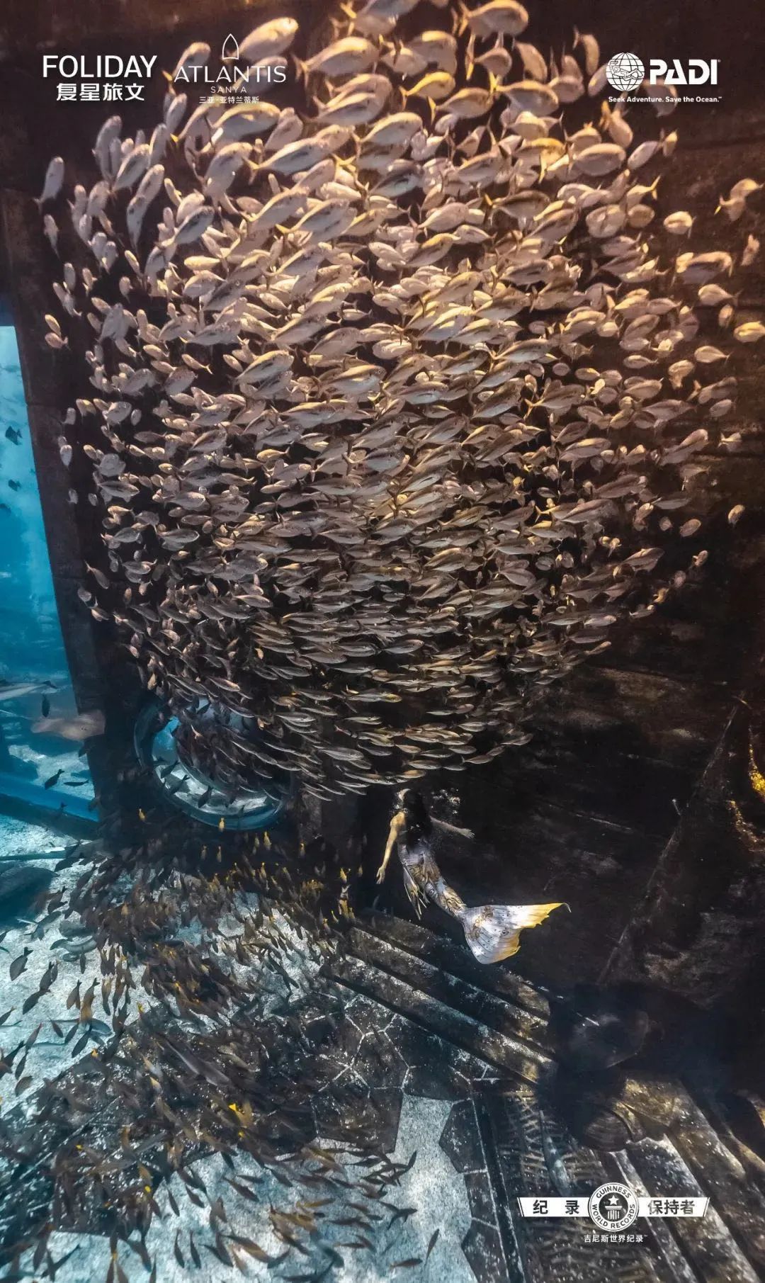 三亚亚特兰蒂斯为此次吉尼斯世界纪录挑战准备数月,与PADI专业潜水教练协会(Professional Association of Diving Instructors)在国内严格遴选,110名“美人鱼”入围,其中90%达教练级别。挑战地是三亚亚特兰蒂斯最具特色的大使环礁湖。
