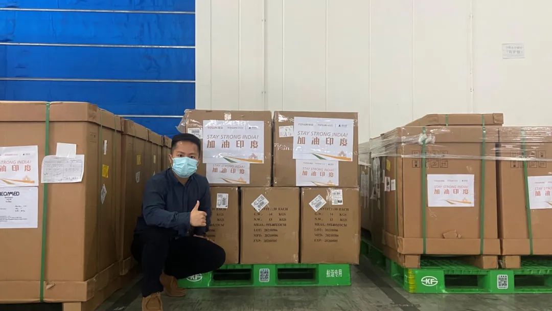 在此次驰援行动中,复星蜂巢AHUJA Hive印度同学和指挥部同学一样,日夜监督驰援物资每一个流程和节点,特别是在印度当地疫情肆虐的情况下,许多同学在做好防护的同时,仍坚持在物资运输和接收点,以确保驰援物资及时抵达。