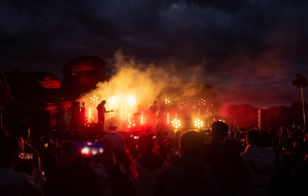 电音吉他几个音符一拨,《公路之歌》《再见杰克》开场,吉木乃草原石城沸了,痛仰乐迷的跟唱声响起。音乐会现场还有报名参与此次公益活动的117名痛仰乐迷,其中有一半来自新疆之外的全国各地,落地阿勒泰机场后再坐4小时大巴来到现场。他们并未空手而来,每人都带来了给当地牧民沉甸甸的常用药。