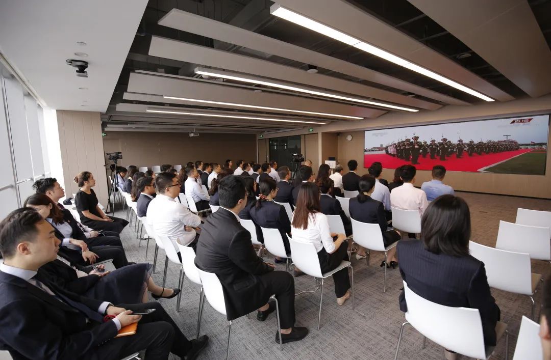 7月1日上午,复星党委组织在沪党员、员工在外滩金融中心集中学习观看“庆祝中国共产党成立100周年大会”现场直播。复星国际联席董事长汪群斌,复星党委书记、复星国际高级副总裁李海峰,复星党委副书记、复星国际高级副总裁、联席首席财务官张厚林,复星党委委员、联席首席战略赋能官施喆等现场参与学习。