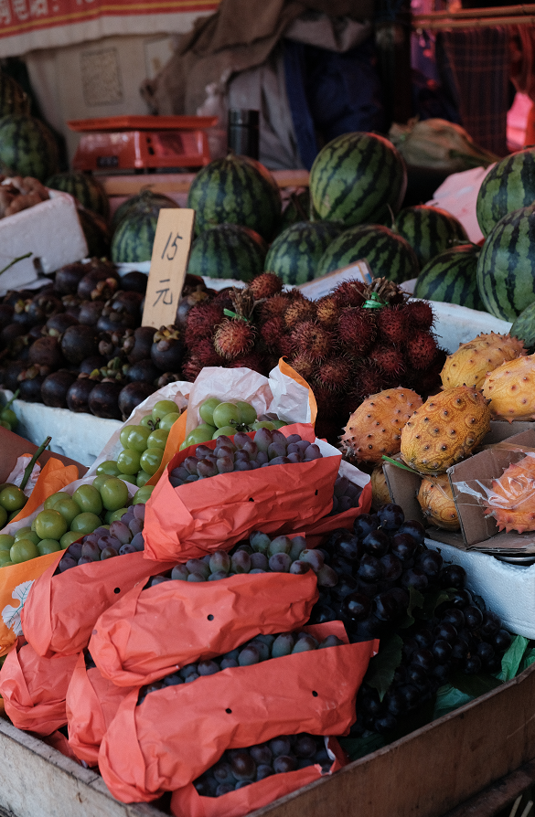 忠义市场是丽江最热闹的农贸市场,有水果区、蔬菜区、生活用品区、茶叶区、干货区、肉禽区... ...南来北往的货品,东瞧西逛的客人,本地的居民、外来的游客,就像一幅丽江市井生活画卷,缓缓流动。