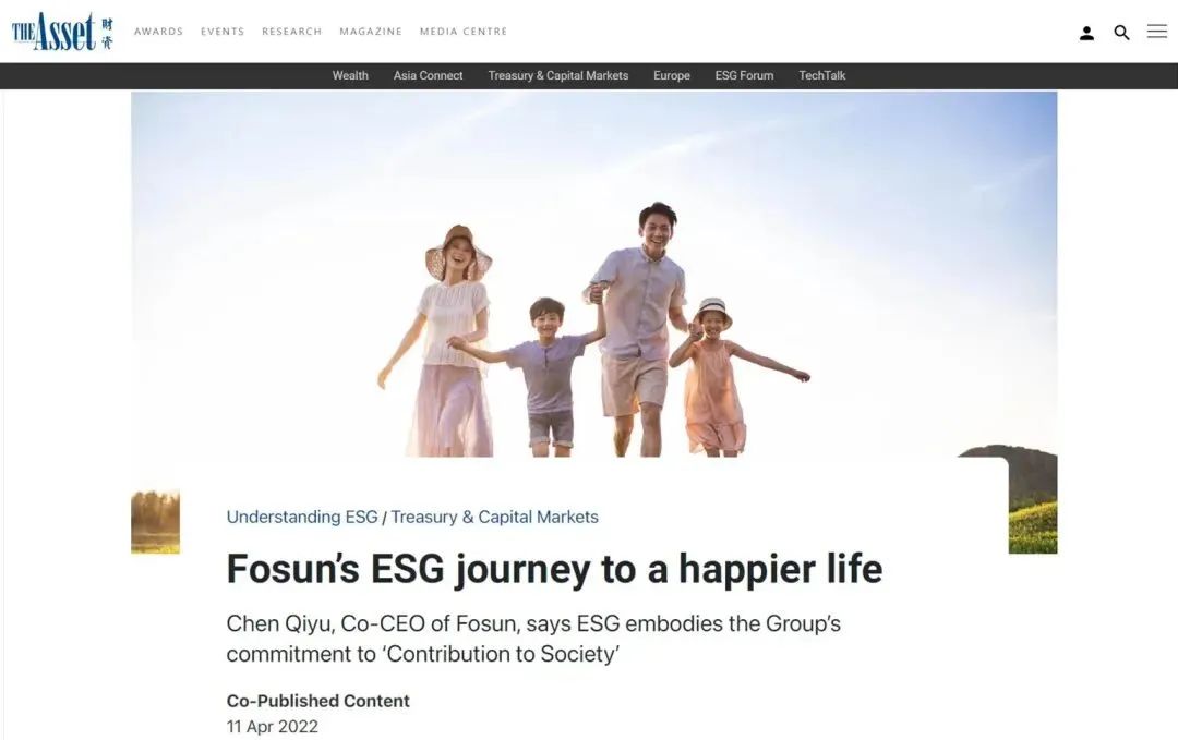 4月11日,亚太区金融财经行业杂志《The Asset 财资》对复星国际执行董事兼联席CEO陈启宇进行采访,刊登标题为:Fosun’s ESG journey to a happier life (复星ESG之旅-通往幸福之路)。主要聚焦近期投资市场所关注的上市公司在环境、社会和治理(ESG)方面的工作及策略等热点话题。