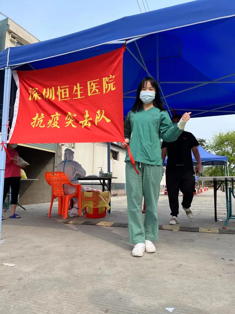 穿着防护服,27度的温度已经憋的满头大汗了,采样时身后的志愿者拿着小花伞给深圳恒生医院护士吴贝贝遮挡一下太阳,“我个子高嘛,片刻阴凉也是好的”!