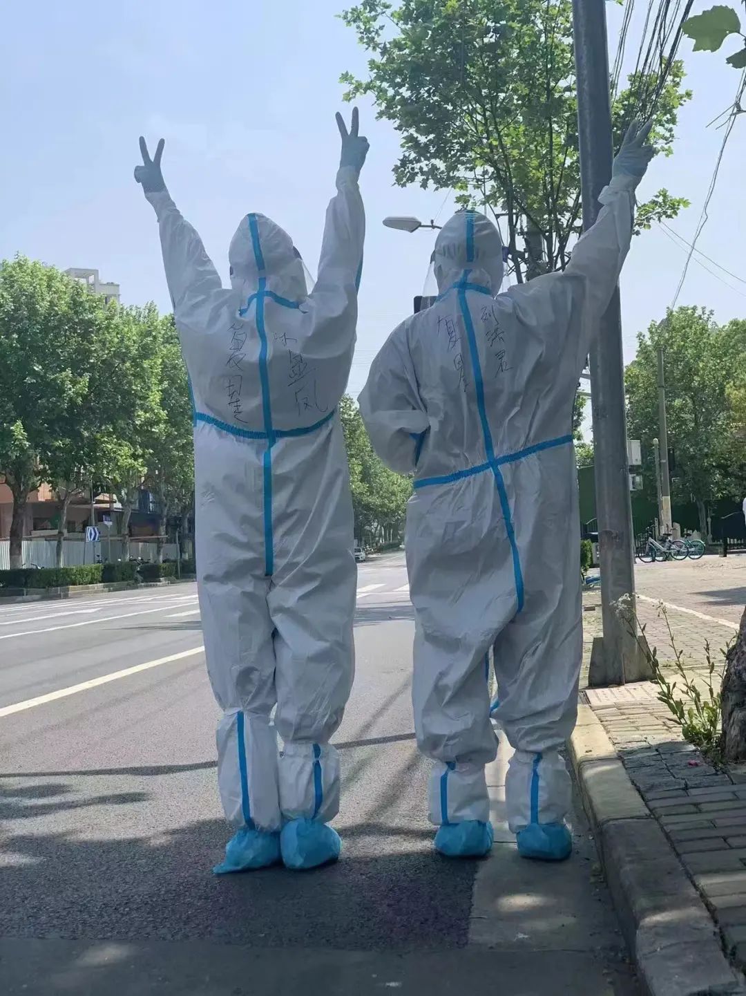佛山复星禅诚医院医护人员林显凤和刘洪君出发时留个背影:不管抗疫工作多辛苦,也要给生活比个“耶”!