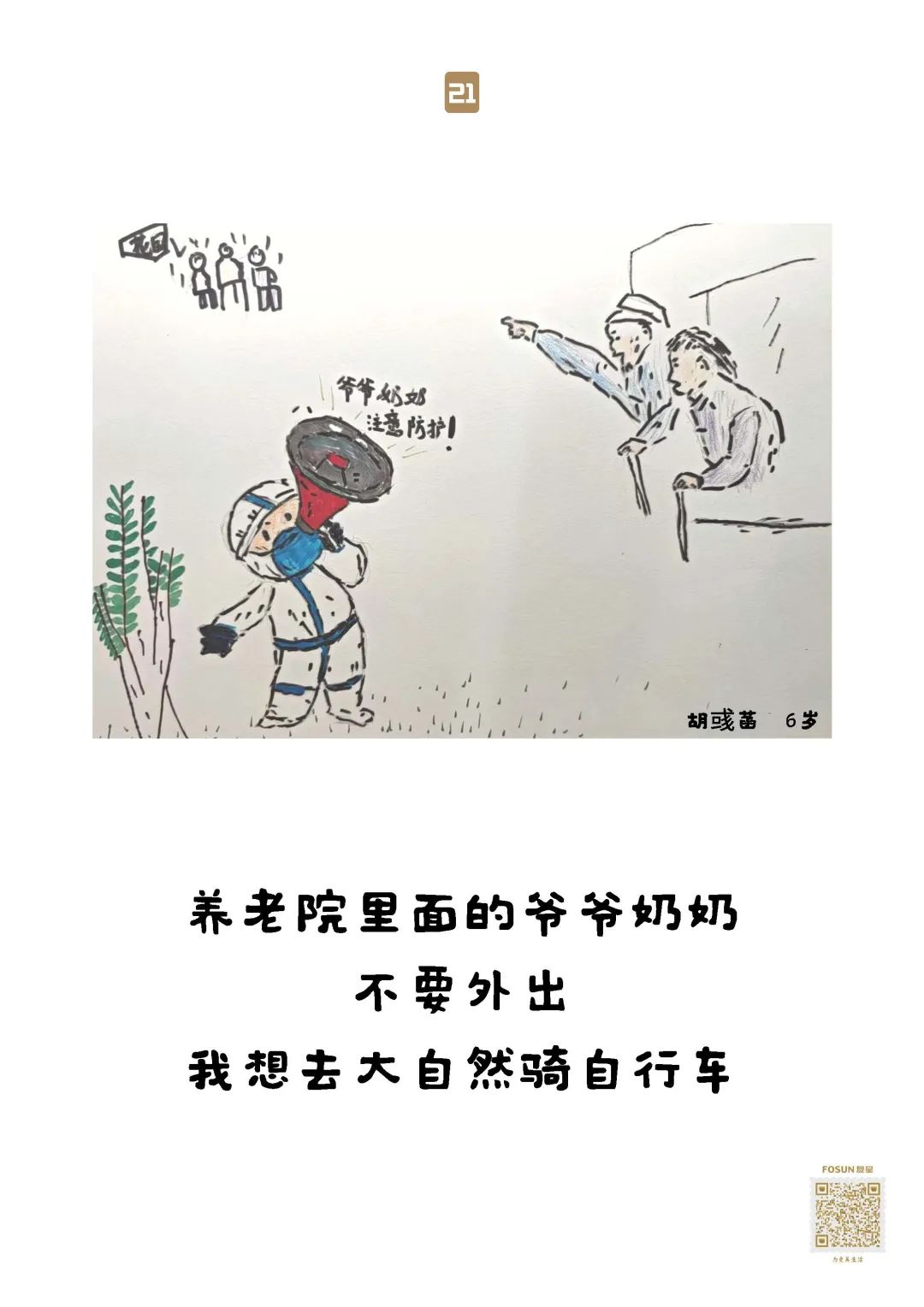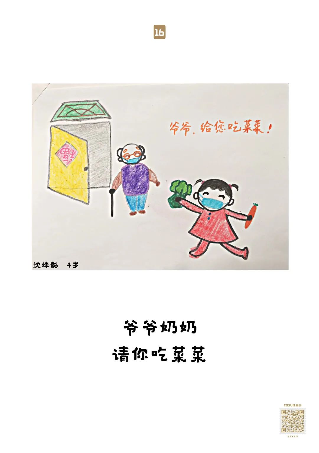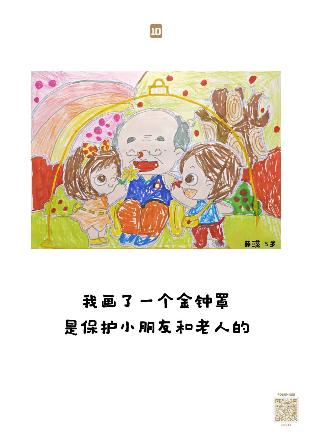 这些“童画童话”,随物资送去养老院保护“老宝贝”,就像小宝贝们说的:我有金钟罩,我有神奇的大伞,爷爷奶奶会健健康康、平平安安的!