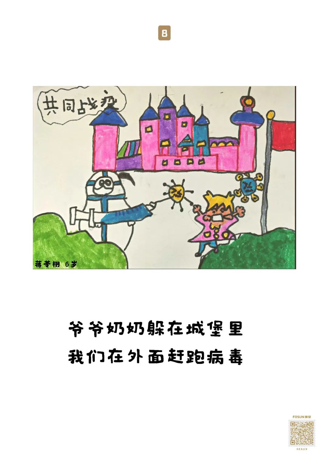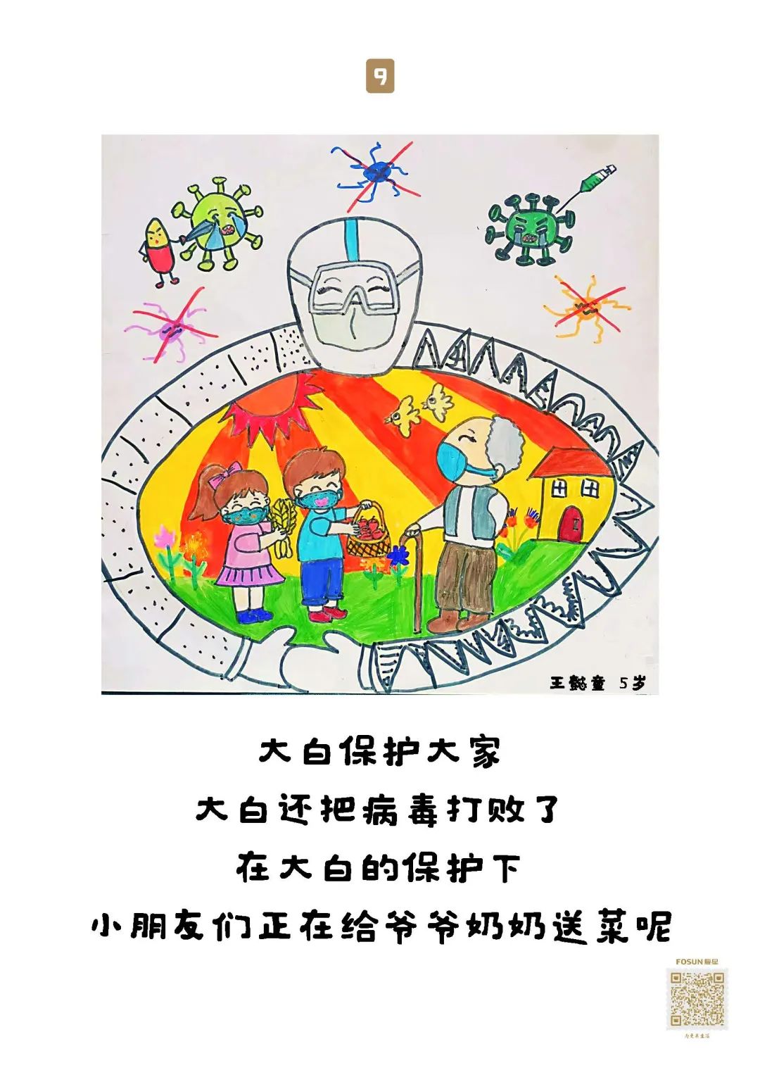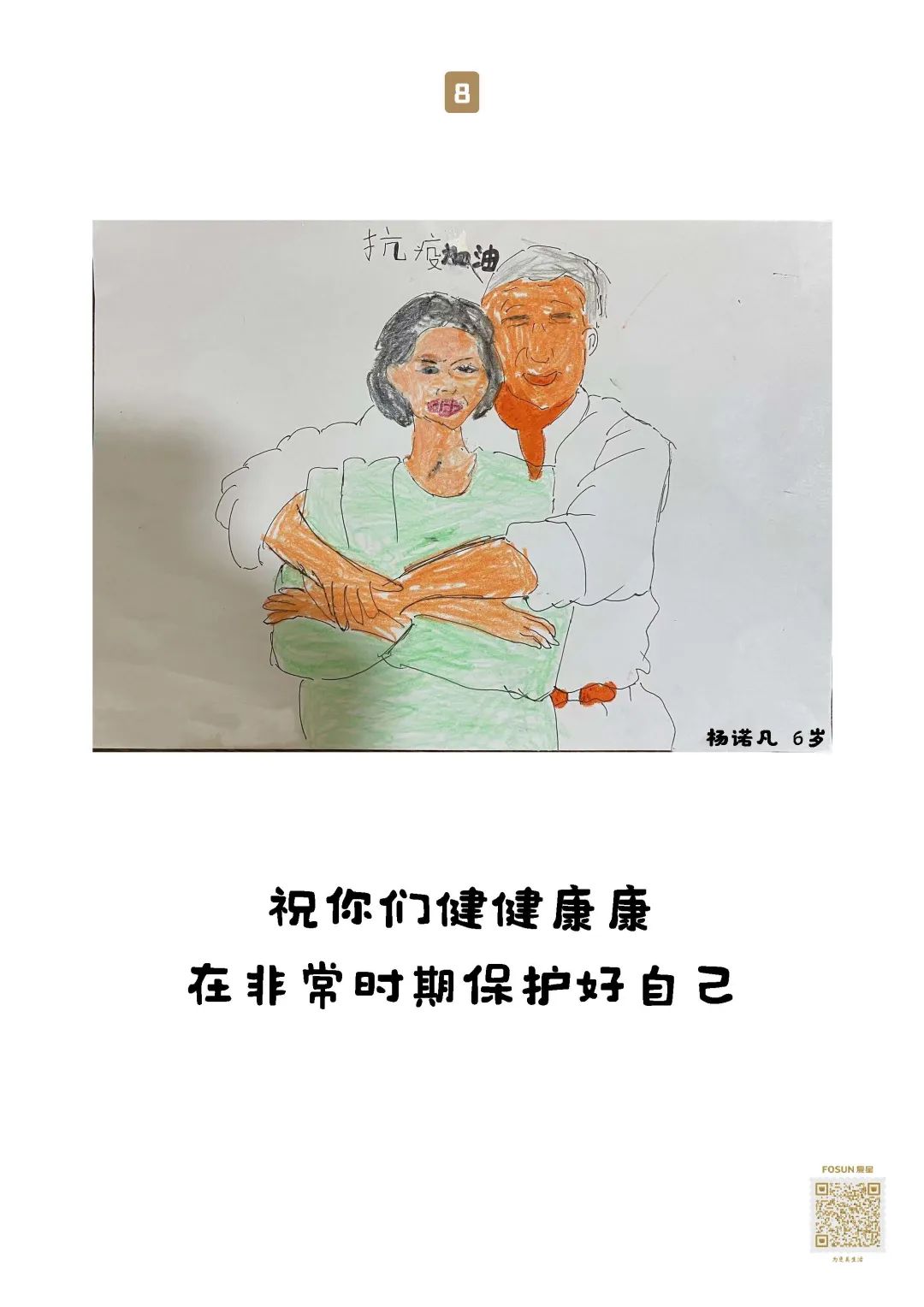 这些“童画童话”,随物资送去养老院保护“老宝贝”,就像小宝贝们说的:我有金钟罩,我有神奇的大伞,爷爷奶奶会健健康康、平平安安的!