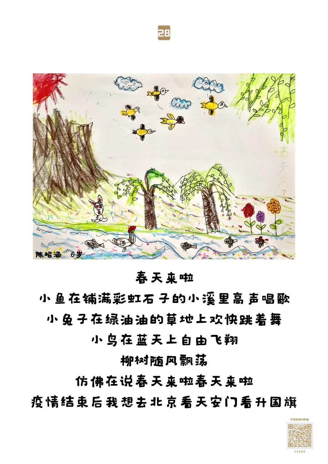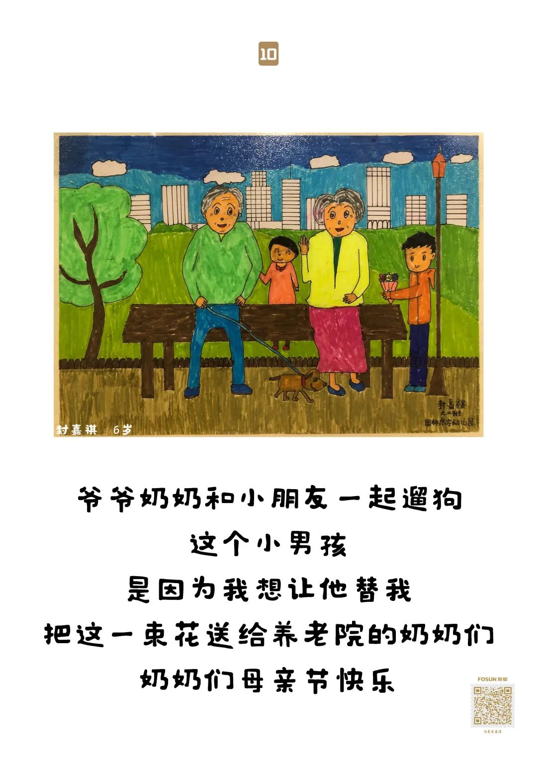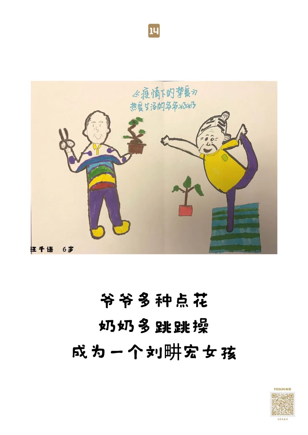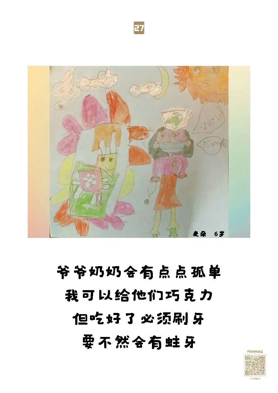 一直做助老公益活动的田林东方幼儿园,看到复星基金会“老吾老”项目后,4月20-27日,小到大班175名4-6岁孩子原创“给爷爷奶奶的画”。