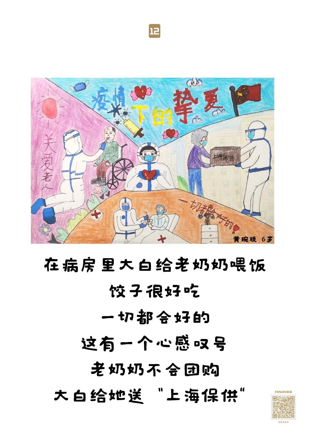 33幅童言童画 贴在物资箱上送给了爷爷奶奶们