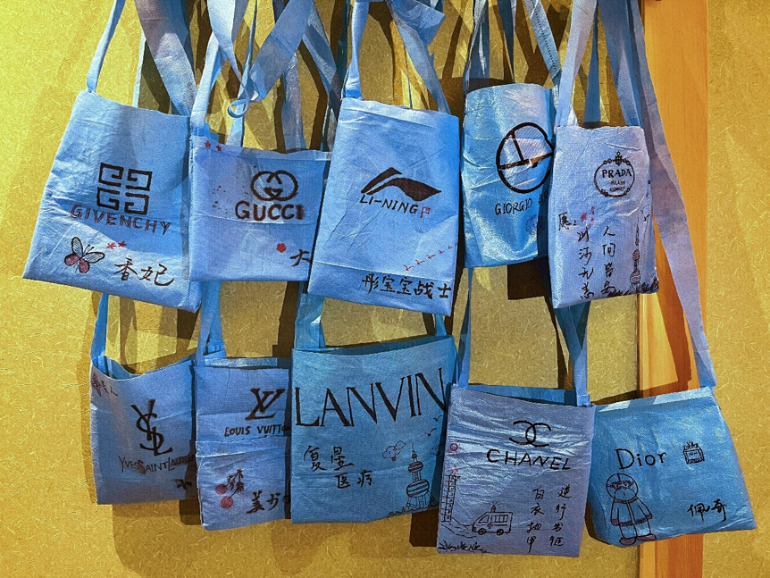 结束一天工作,完成全身消杀、自测核酸、工作复盘等“标准动作”后,姑娘们已经瘫倒在各自床上。每天最开心的就是和家人视频,报平安,让家人放心。当问到有没有什么娱乐活动时,易嘉丽拿出了她和队友们自信满满的手工作品——自制“大牌包包”。简单轻便的包包,出任务时可以放手机和消毒湿巾等,还很时尚,姑娘们眼中的上海是时尚之都,背上它们上街,满满的时尚感。
