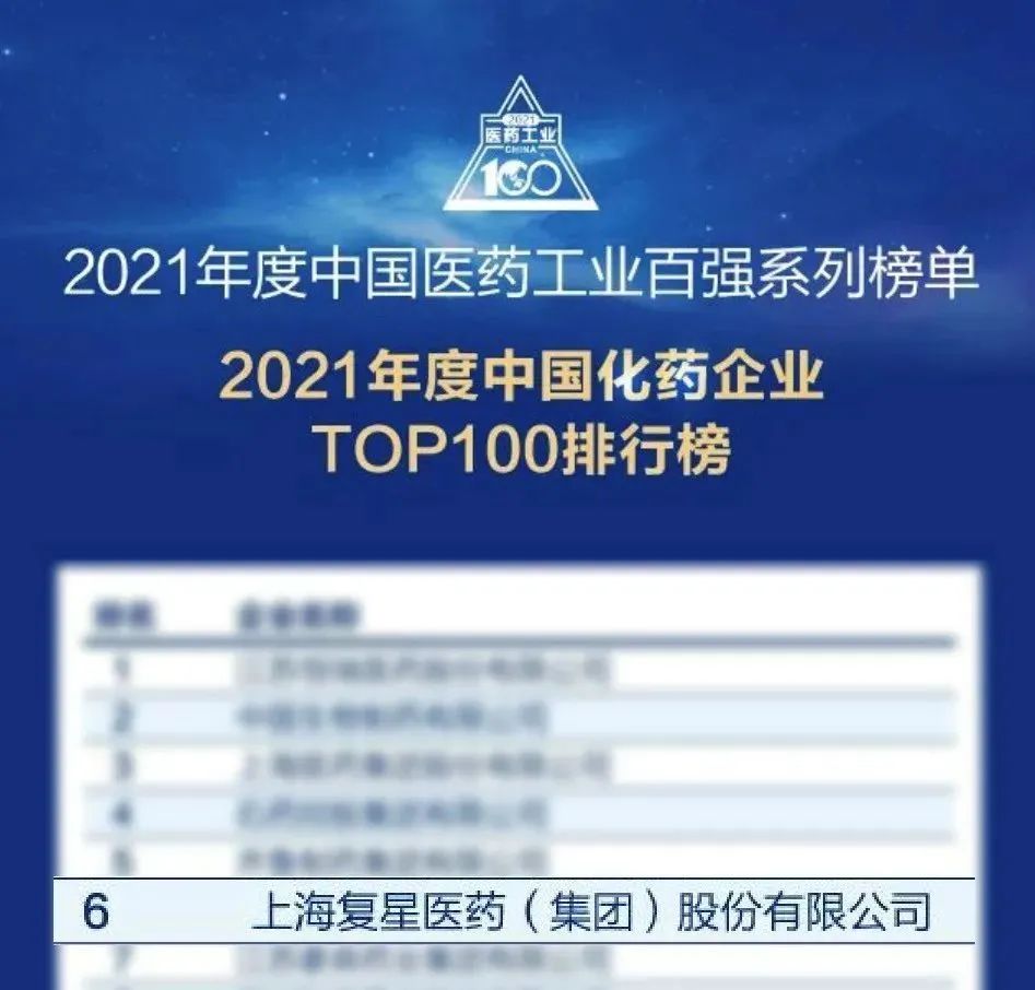 相关阅读:复星医药荣登2021年度中国医药工业百强榜Top10