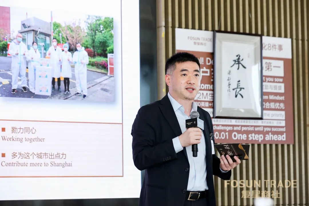 他表示,“道生一”,复星商社诞生于2020年新冠疫情全球暴发之时,脱胎于复星新冠肺炎抗疫全球战时指挥部,其“助天下”使命与生俱来;“一生二”是坚守客户至上和交易第一,时刻提醒复星商社“持续珍惜客户的信任,持续为客户创造价值”;“二生三”要求商社发挥独有的“复星生态、抗疫品牌、资金实力、专业高效、创新驱动”五大优势,全方位与国内外企业和机构平等合作,希望客户、合作伙伴与复星商社共同碰撞更具爆发性的新模式,创造更大价值;“三生万物”则指出,复星商社已经拥有一支“充满激情、谦逊好学、全球视野、善打硬仗、专业高效”的年轻团队,这个团队与各块专业领军人物才是复星商社最为核心的资产,也是复星商社走向三生万物的基石和保障,除此之外,还非常需要外部伙伴的充分信任,让我们一起坚定携手,共同承长。
