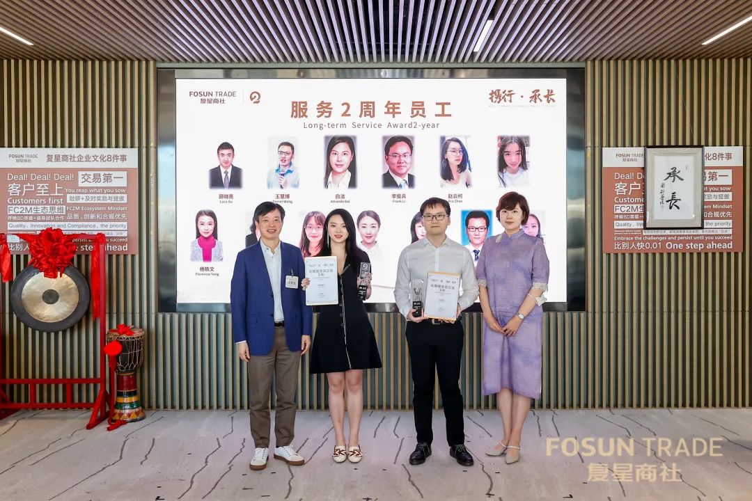 同时,复星商社授予九安医疗、英科医疗、艾康生物、3M等“复星商社全球卓越供应商奖”;授予NJF、上海西岸开发、京东国际、徐汇国投等“全球战略合作伙伴奖”;授予顾晓亮、王慧博、白洁、李俊兵、胡钰杨子等“服务2周年员工”称号。