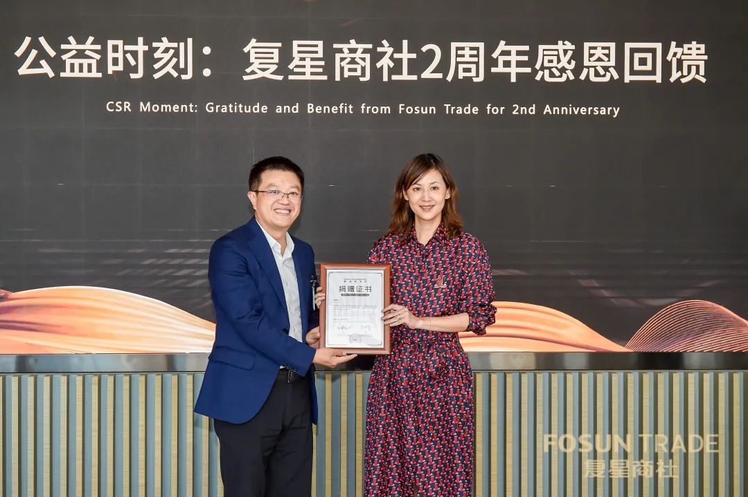 王津元接收捐赠并表达感谢,希望商社未来之路越走越宽广,与复星基金会共同发展。