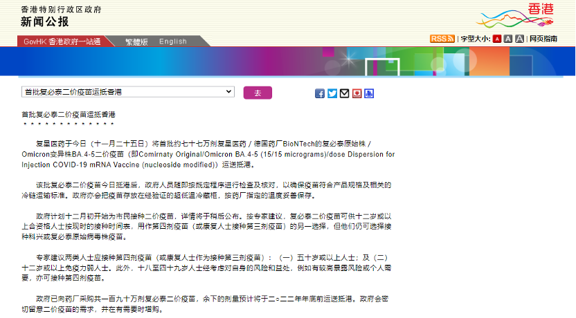 复必泰二价疫苗运抵港澳即将开打 全面覆盖奥密克戎病毒变异株
