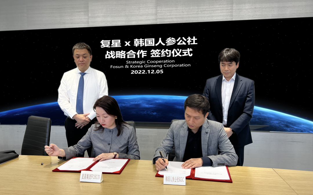 12月5日,复星与韩国人参公社(Korea Ginseng Corporation,简称“KGC”)在上海外滩金融中心举行战略合作会谈及签约仪式。根据战略合作备忘录,双方将本着把握机遇、长期合作、互利共赢的原则,在产品共创、渠道共享、联合营销、全球化等方面开展战略合作。