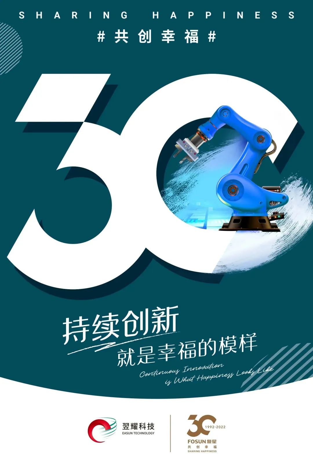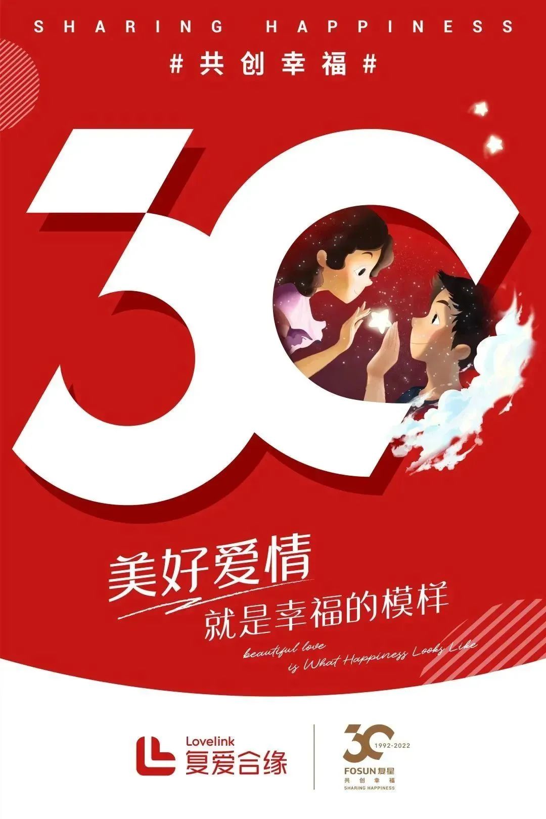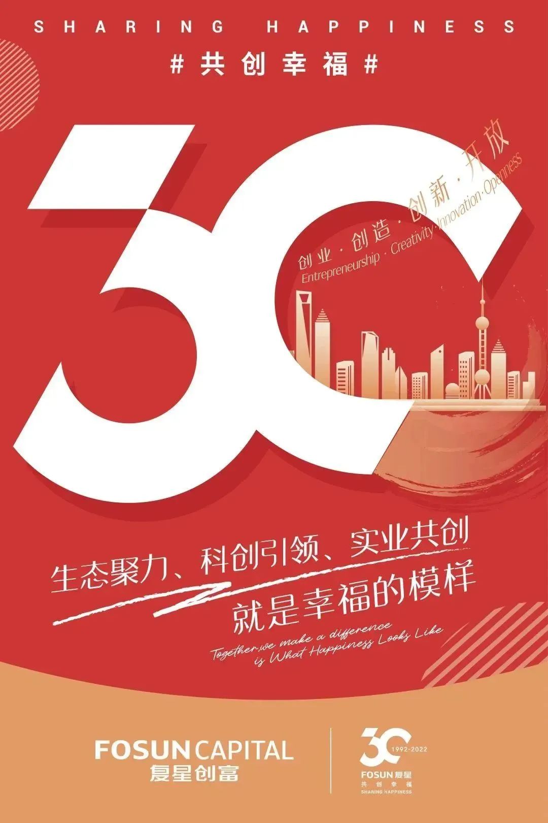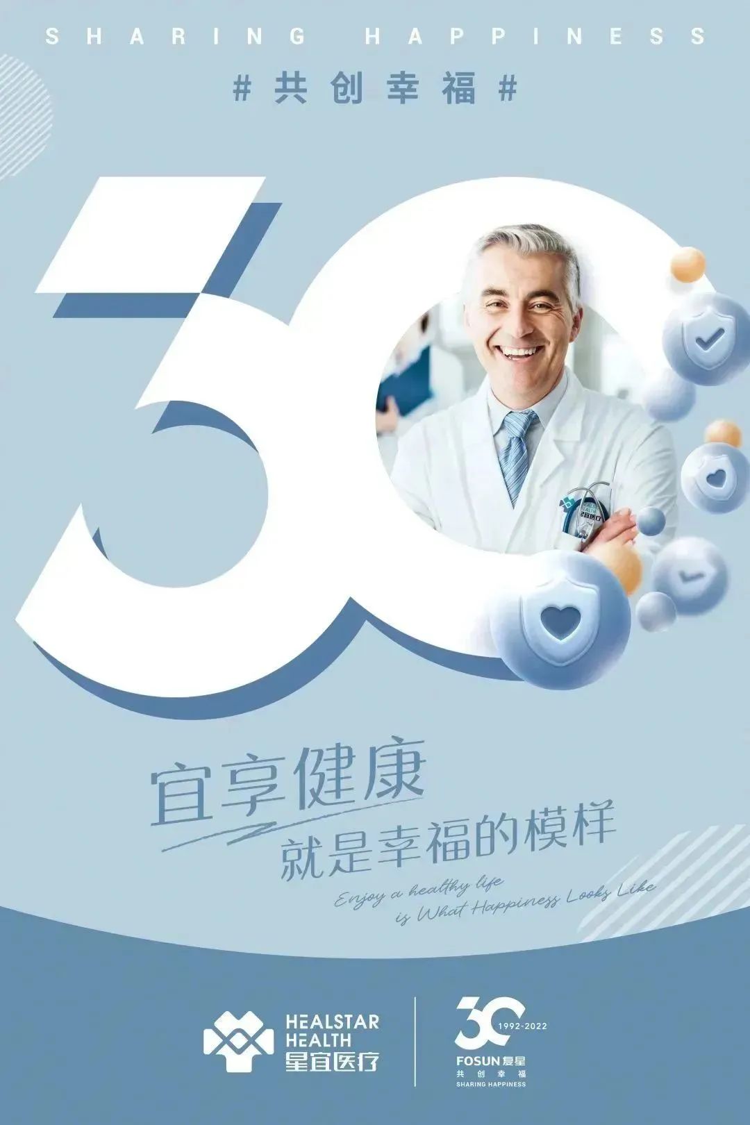 今年是复星创业30周年的重要时刻。复星联合旗下生态企业,共同发布30周年庆祝海报,以数字“30”为统一视觉主体,融入各个产业特有的元素,展示了复星始终为全球家庭幸福的使命和努力。