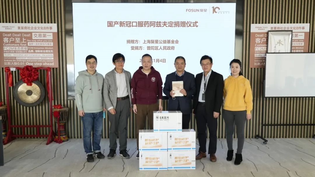 ↑ 复星基金会向普陀区合作交流办捐赠1000瓶阿兹夫定片