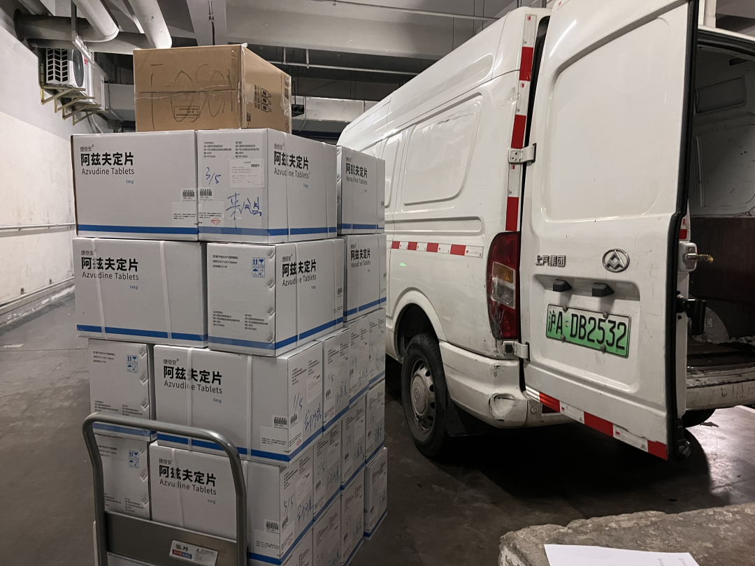 “复星阿兹夫定捐赠专项战役小组”紧急对其进行物资匹配及筹措。1月25日,年初四,复星基金会助理秘书长郭帅早早来到办公室,对阿兹夫定进行核对、分类、拆箱、登记追溯码,然后再将物资搬上推车。早上十点,6200瓶阿兹夫定完成出库。