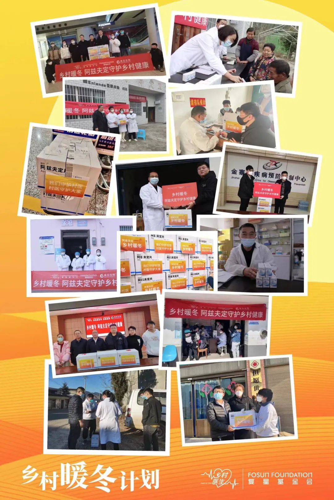 2023年1月9日,上海复星公益基金会(以下简称“复星基金会”)联合复星医药、真实生物启动“乡村暖冬计划”,向中西部农村地区以及养老院、福利院等捐赠1亿元新冠抗病毒口服药阿兹夫定,并联合爱心企业和机构配捐爱心包,联合专家、院士开展面向村医的线上新冠诊疗培训课程,助力农村地区平稳度过这个“暖”冬。