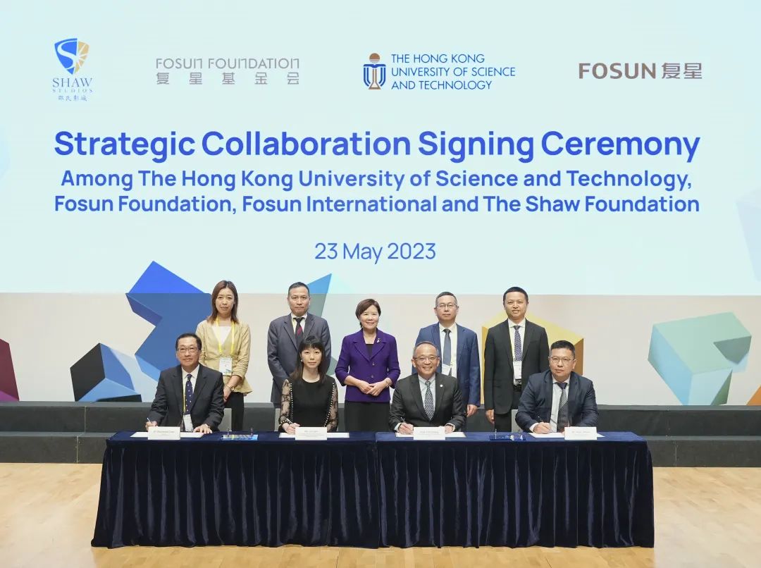 复星国际总裁助理、香港、澳门执行首代罗紫君,复地产发香港公司总裁袁健宇,邵氏基金会主席陈伟文和香港科技大学副校长郑光廷在港科大逸夫演艺中心共同签署了此次战略合作协议。香港科技大学校长叶玉如,复星国际执行总裁、复星蜂巢董事长王基平,复星基金会理事长李海峰,复星创富轮值董事长徐欣,复地产发集团CEO张智聪等,共同见证了此次签约。