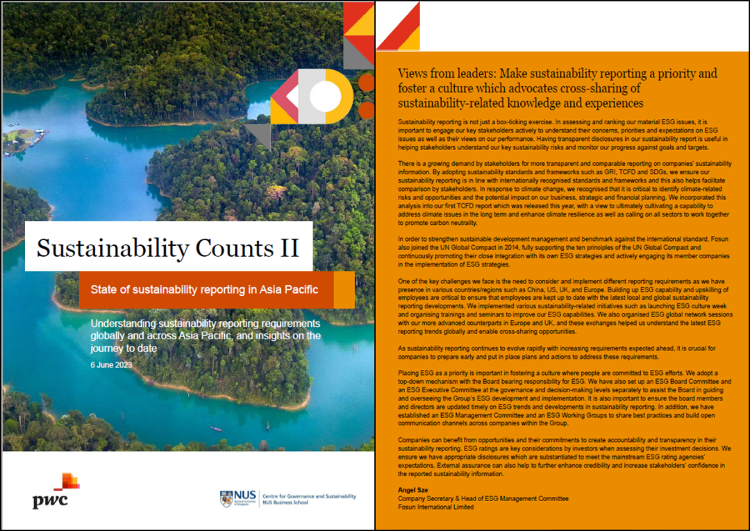 相关阅读:新加坡国立大学与普华永道发布《可持续发展的重要性研究报告》 肯定复星ESG披露水平