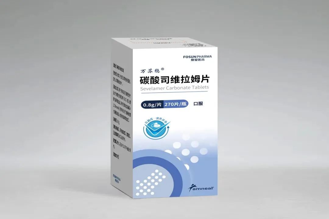 8月15日,由Amneal公司研发生产,复星医药独家商业化的碳酸司维拉姆片(商标:万苏稳®)获得国家药品监督管理局的药品注册批准,用于控制正在接受透析治疗的慢性肾脏病成人患者的高磷血症,及血清磷≥1.78mmol/L但并未进行透析的慢性肾脏病成人患者的高磷血症。碳酸司维拉姆片(万苏稳®)按照化药5.2类标准获批,视同通过仿制药一致性评价。