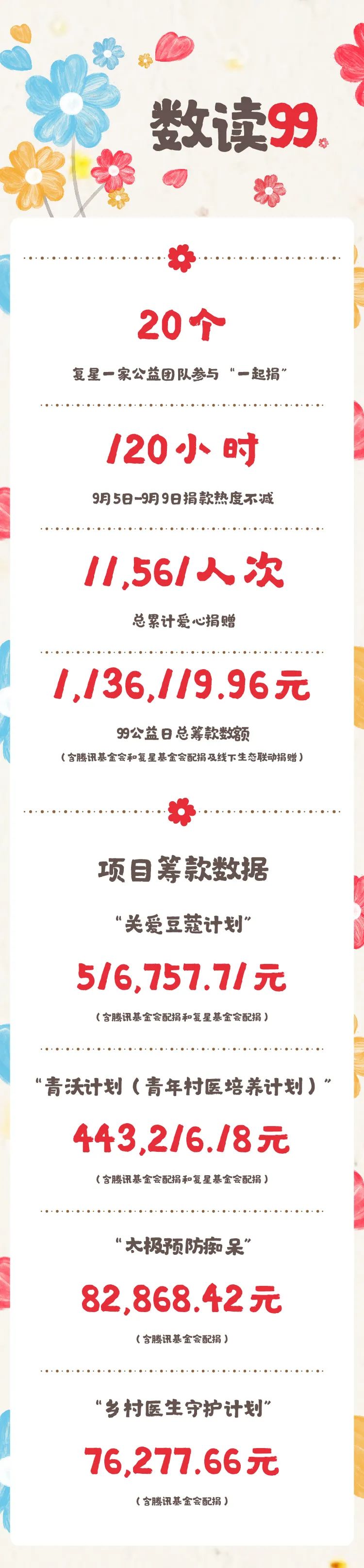虽然“99公益日”暂时告一段落,但“一块做好事”的公益精神还将继续。复星基金会将与公益伙伴一同开启项目执行工作,定期对公众同步项目的进展情况。复星基金会将不负支持与信任,秉承“助天下”初心,扎实做好项目,把温暖和善意传递给每一位需要帮助的受益人!