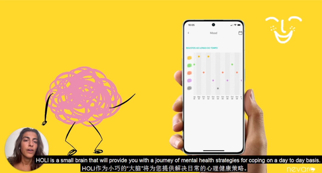 来自葡萄牙的Nevaro团队是Protechting 4.0的冠军团队,他们分享了针对焦虑障碍(恐惧症)的数字平台创新解决方案,该团队的产品“HOLI”以临床积极心理学为基础,用智能技术测量用户的生理活动,每日个性化地为用户提供一项挑战任务,如呼吸练习以保持用户的心理健康。截至目前,Nevaro已经拥有了超过4000名用户,其产品降低了21%的职业倦怠风险,企业团队生产力提高90%,个体应对能力提高23%。