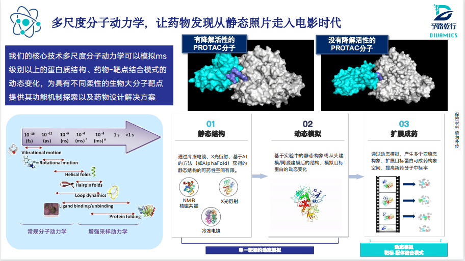 予路乾行团队从2015年建立至今,始终以科学家all- in的初心和决心来做青年创业,探索运用计算生物学-药物化学融合性技术——基于AI的多尺度分子动力学模拟平台来为药物研发在不同场景下的困境提供最有效的支持。经过八年的孕育积淀,团队迎来了爆发期,开发的算法软件已为葛兰素史克、默克等国际头部药企购买使用,订单复购率达80%以上。