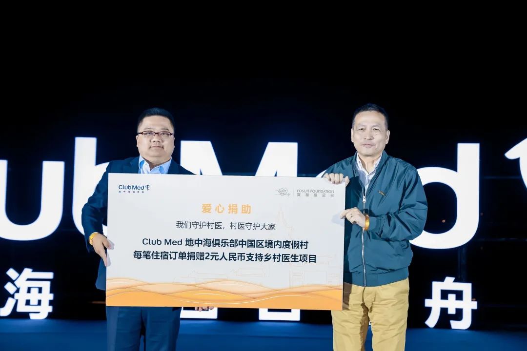 开业仪式上,Club Med地中海俱乐部宣布将支持中国基层农村,守护村医,助力乡村振兴。即日起,Club Med中国境内度假村每发生一笔住宿订单,都将捐赠2元人民币支持由复星基金会联合中国人口福利基金会共同发起的健康暖心乡村医生项目。上海复星公益基金会理事长李海峰代表乡村医生项目接受捐赠。