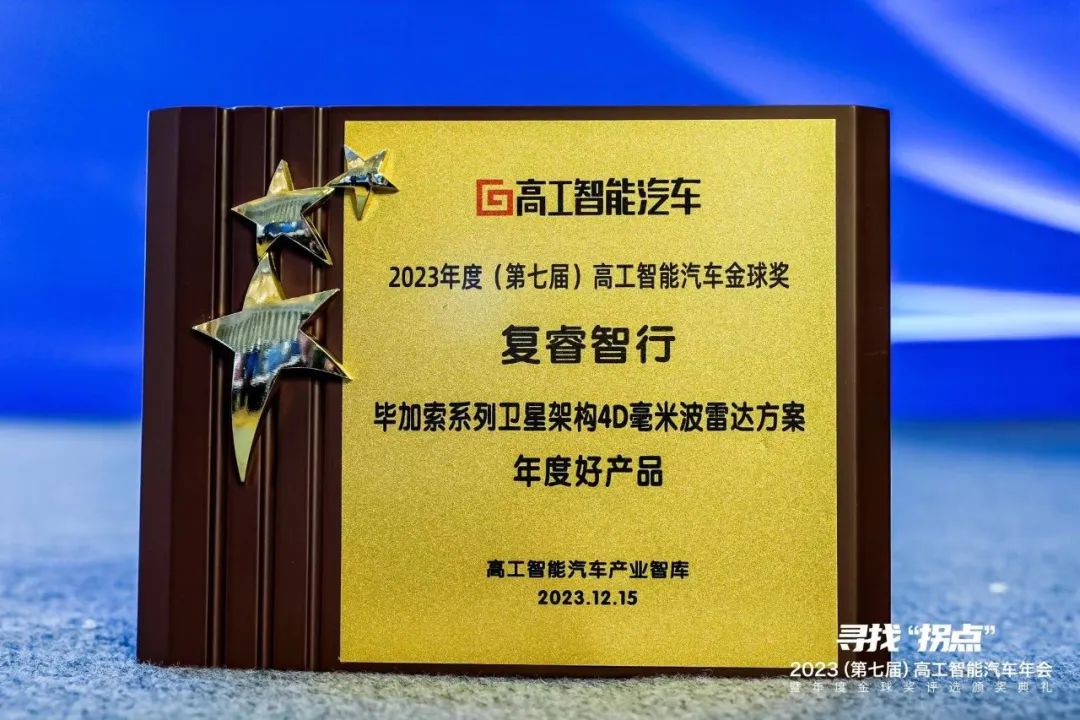 12月15日,复睿智行在第七届高工金球奖颁奖典礼上再度斩获荣誉,凭借领先的自动驾驶感知方案和独创的4D毫米波雷达技术,成功摘得两项重要奖项:“年度最具投资价值公司”以及“年度好产品-毕加索系列卫星架构4D毫米波雷达方案”。