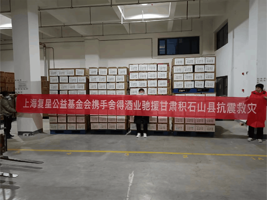 12月23日,舍得酒业通过上海复星公益基金会向甘肃积石山县地震灾区捐赠300万元现金和100万元物资,用于支持抗震救灾及灾后重建。经过一天的紧张备货,物资整理完毕,并以最快速度发往灾区。