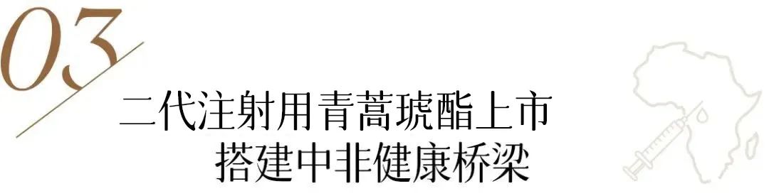 2023年6月,复星医药自主研发的第二代注射用青蒿琥酯通过了世卫组织的药品预认证,成为首个通过WHO预认证的“一步配制青蒿琥酯注射剂”,进一步提升青蒿琥酯临床使用的便捷性,广泛惠及医疗条件欠佳的非洲偏远地区的危重疟疾患儿。
