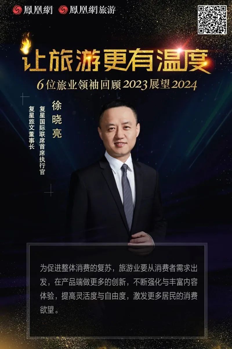 在旅游行业的棋盘上,2023年的落子已成历史,2024年崭新的布局正徐徐铺开。近日,复星国际联席首席执行官、复星旅文董事长徐晓亮等6位旅游行业领袖接受凤凰网旅游专访,复盘2023,展望2024,为新一年旅游行业的发展提供启示。