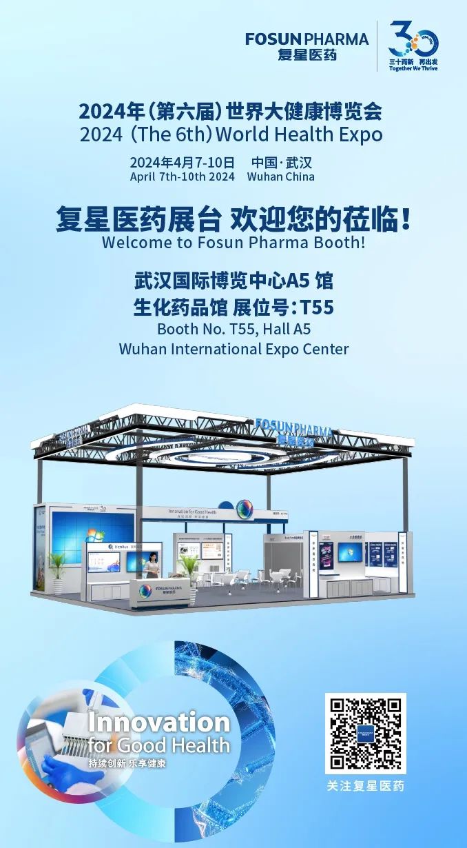 今年,复星医药首度亮相第六届健博会,并协同多家成员企业在 A5馆生化药品馆(展位号:T55)设置108平特装展台展示,展示多款创新医药、医疗器械产品,充分展现复星医药开放式创新研发生态、全球化的运营成果。